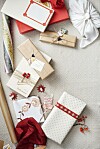 De bästa presenterna kommer i små och rikt dekorerade paket. Torkade sommarblommor blir romantiska inslag och loppisfyndade bokmärken ger ett charmigt naivt intryck. Om du bara har enfärgat omslagspapper kan du gå loss med spritpenna och inspireras av motsatser: skriv stort på små paket eller smått på stora. Bara fantasin sätter gränser! Brosch, Georg Jensen, Fenix Antik. Presentpapper och etiketter, Old Touch. Askar och lådor, Myrorna och Erikshjälpen.