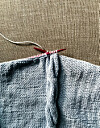 3. Sy fast tofsarna i hörnen, stoppa kudden och sy igen öppningen med smygstygn.