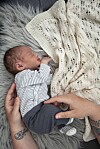 Babyfilten med det vackra mönstret stickar du i ett mjukt garn av bomull och merinoull. Den blir sedan en perfekt bebispresent.