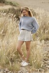 Fäst alla trådar. Virka snoddar att ”knäppa” koftan med, till exempel såhär: dra en första ögla genom maskan precis under den sista rätstickade randen och precis innanför den rätstickade kanten. Virka 40 lm och klipp av garnet med en ände som är lite längre än luftmaskkedjan. Sätt änden på en nål och trä den tillbaka ner till koftan. Fäst både startände och slutände ordentligt, så sitter snodden bra.