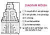 Mosstickning: V 1: Sticka *1 rm, 1 am*, upprepa från *–* v ut. V 2: Sticka rm över am och am över rm. Upprepa v 2.