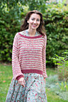 Garnåtgång: 2 (2) 2 (3) nystan av färg nr 104 (rosa) av Sirdar Snuggly Bouclette (37% ull, 36% nylon, 27% akryl) 50 g = 95 m från Teeteegarn/Västgöta broderi. Garnmängden är baserad på angiven stickfasthet och storlek.
