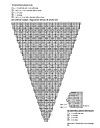 Fortsätt efter diagrammet, den yttersta kantm i var sida stickas rät alla varv av arb. Som framgår av diagrammet ökas det på detta sätt 1 m (omslagen) i båda sidor växelvis på vartannat och vart 4:e varv hela arb igenom.