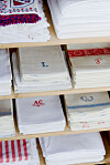 Förvara: Förvara vikt eller hoprullat i torrt och mörkt skåp – inte i plastpåsar. Dukar som viks före mangling kan förvaras så. Vik inte i samma veck varje gång, då försvagas fibrerna.