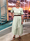 En sommardröm! I Efter fem bar programledaren Anna Brolin den här vackra A-linjeformade klänningen med ett grönt blommönster.