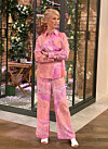 Vi älskar Nyhetsmorgon-programledarens outfit med en mönstrad rosa skjorta och matchande vida byxor – precis den färgklick vi behöver i vardagen!