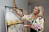 Och det är här på ovanvåningen som hon har sin ateljé och ägnar sig åt sin andra sida av sin konstnärliga ådra - akvarellmålning.